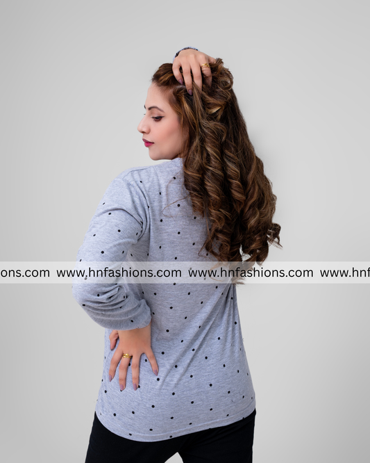 Polka Doted Printed Full Sleeves Night Suit