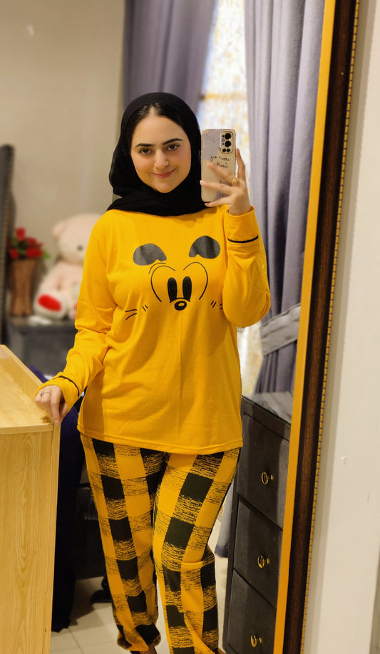Yellow Mickey Mouse Printed Night Suit