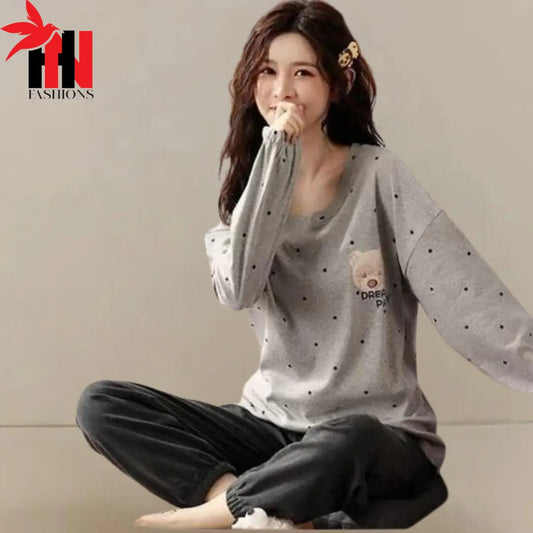 43% OffGray Bear Printed Night Suit