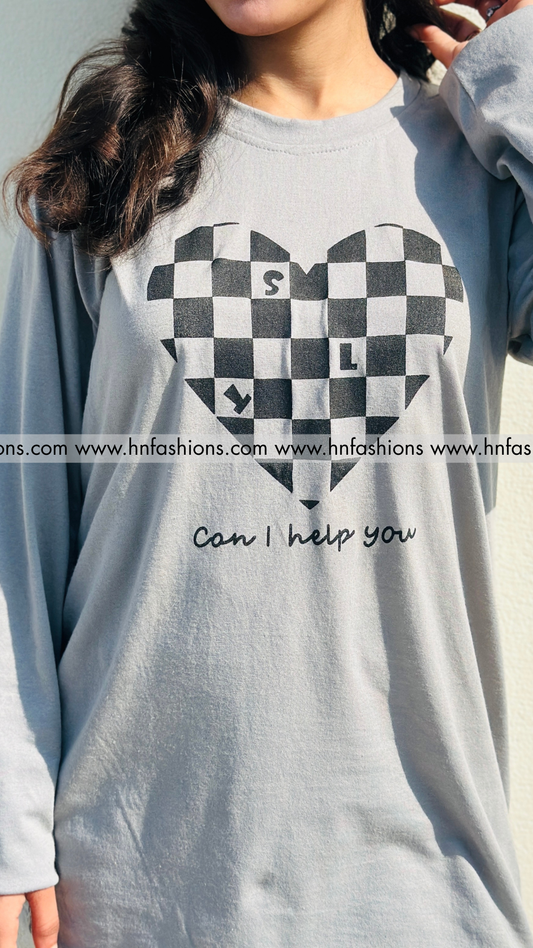 Grey Puzzle Heart Printed Night Suit