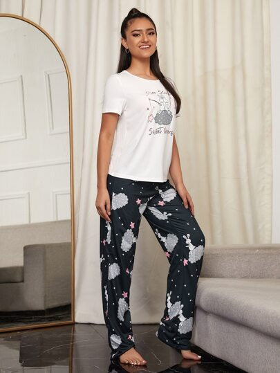 White Sweet Sleep Printed Night Suit