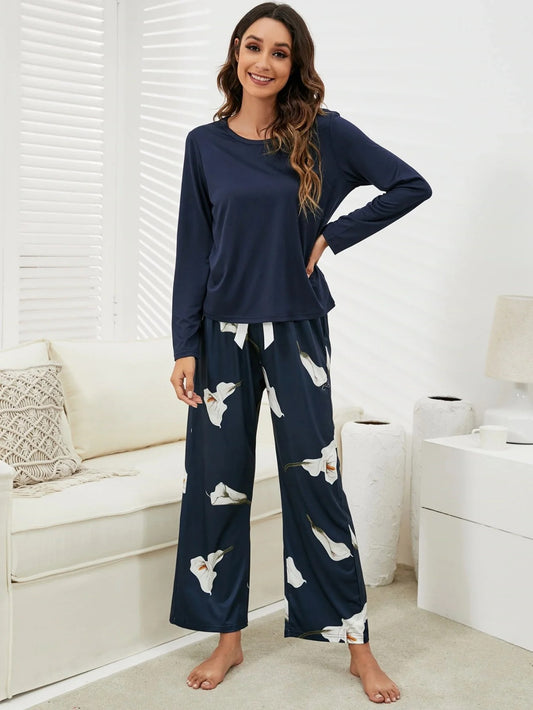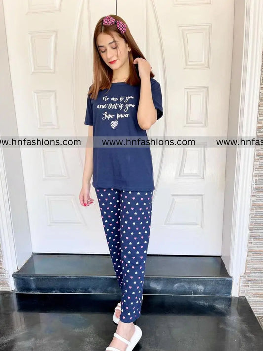 Navy Blue Pulip Flower Night Suit For Women