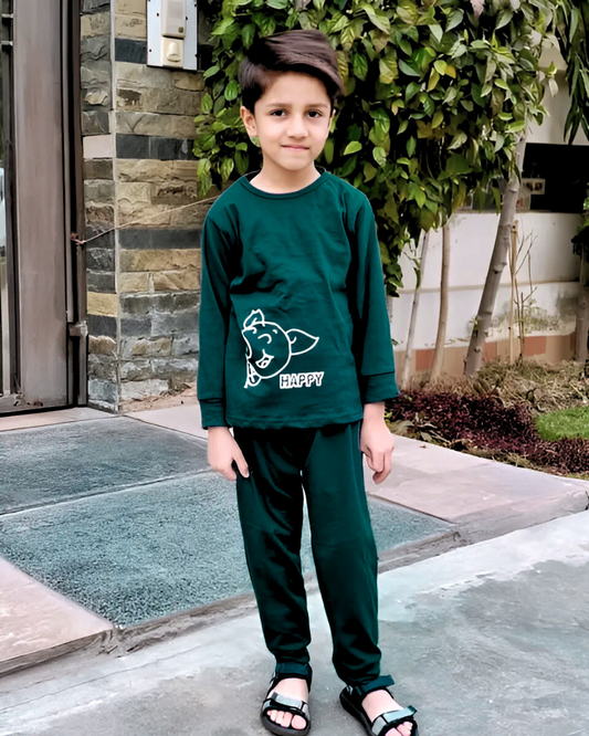 Green Happy Cow Printed Kids Wear (Each)