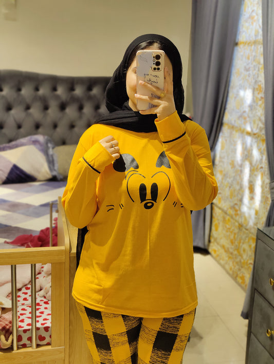 Yellow Mickey Mouse Printed Night Suit