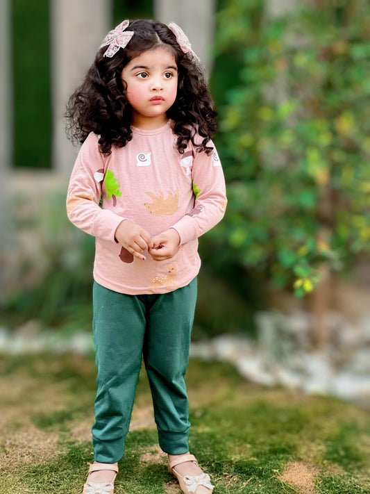 T-Pink Love Heart Printed Night Suit