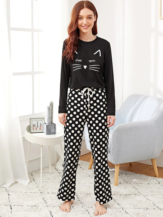 Black & White Doted Printed Night Suit