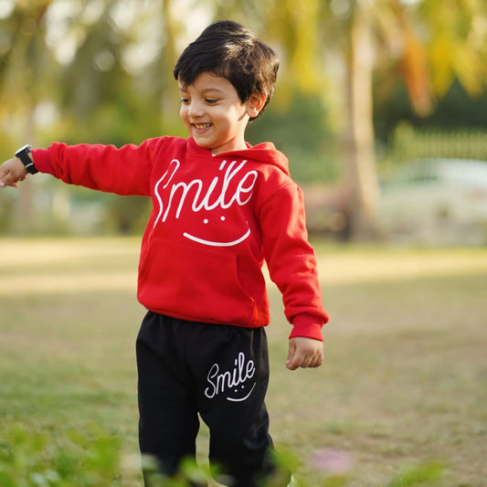 Red Smiley Printed Sweatshirt With Trouser For Kids