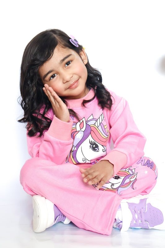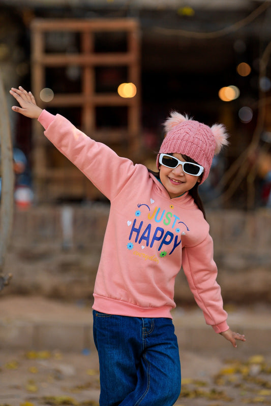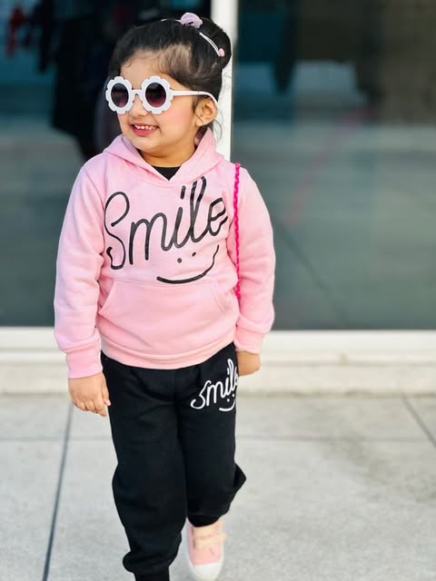 Pink Smiley Printed Hoodie With Trouser For Kids
