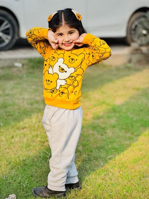 Yellow Bears Print Sweatshirt With Trouser For Kids (2 Piece)