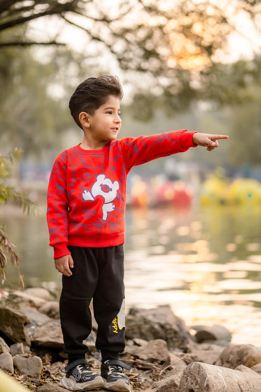 Red Bears Print Sweatshirt With Trouser For Kids (2 Piece)