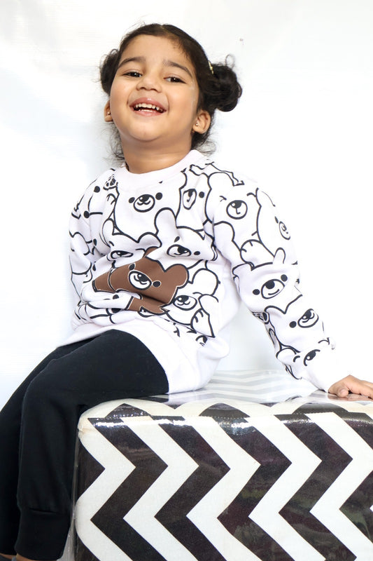 White Bears Print Sweatshirt With Trouser For Kids (2 Piece)