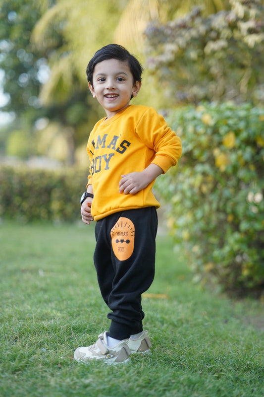 Yellow Mama's Boy Printed Sweatshirt With Trouser For Kids