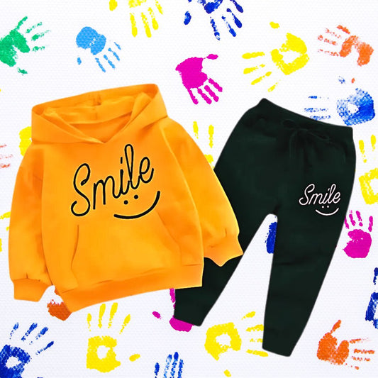 Orange Smiley Printed Hoodie With Trouser For Kids