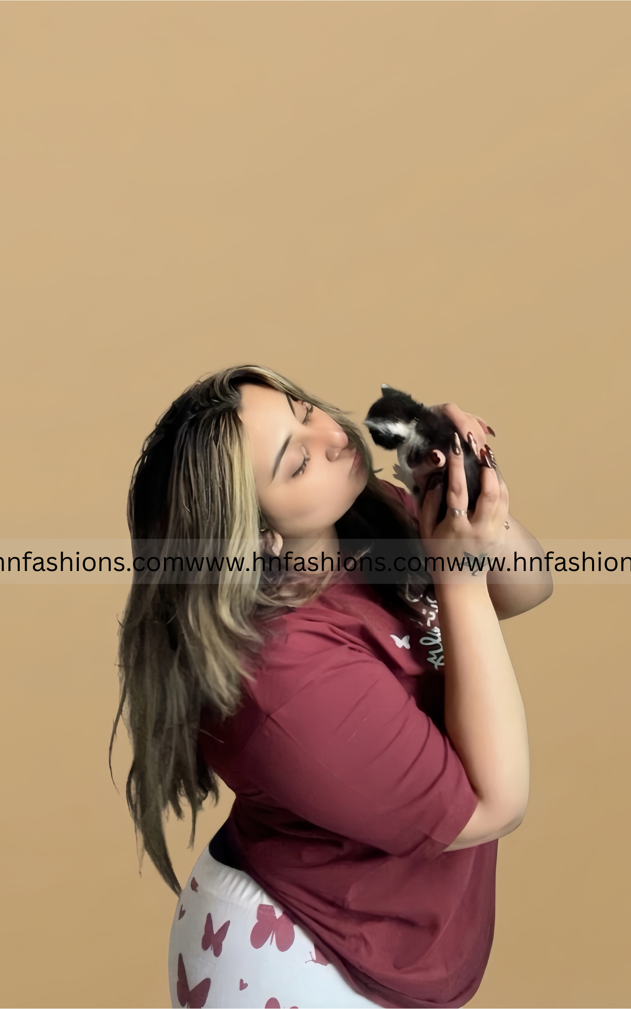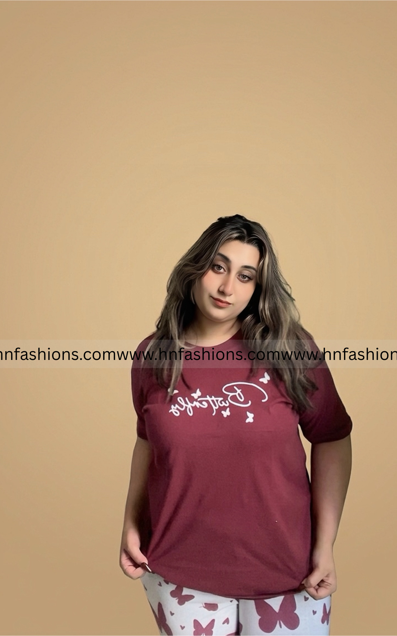 Maroon Small Butterfly Printed Night Suit